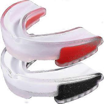 2 عبوة واقي فم رياضي لكرة السلة ، هوكي الميدان ، القتال ، الملاكمة ، حماية الأسنان ، أبيض / أحمر + أبيض / أسود
