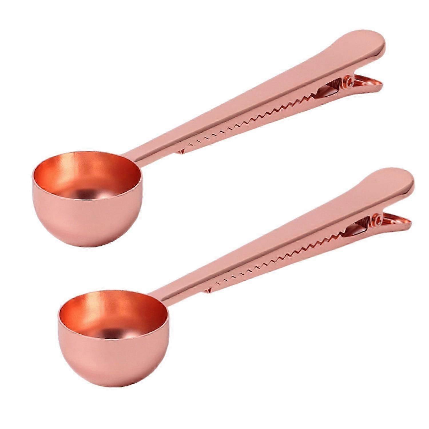 2Pack 2 in 1 Coffee Scoop with Clip,Stainless Steel Coffee Measuring Spoon with Bag Seal Clip-Rose