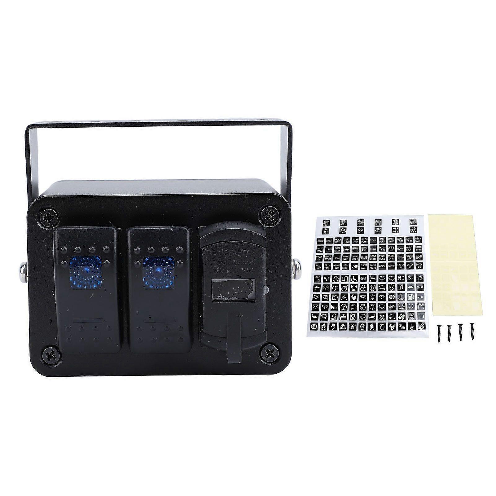 2 Gang Toggle Switch Box with Voltage Meter PD Type C QC3.0 USB Port Waterproof DC 12 to 24V for Car Truck Boat RV Trailer UTV ATV Blue Light