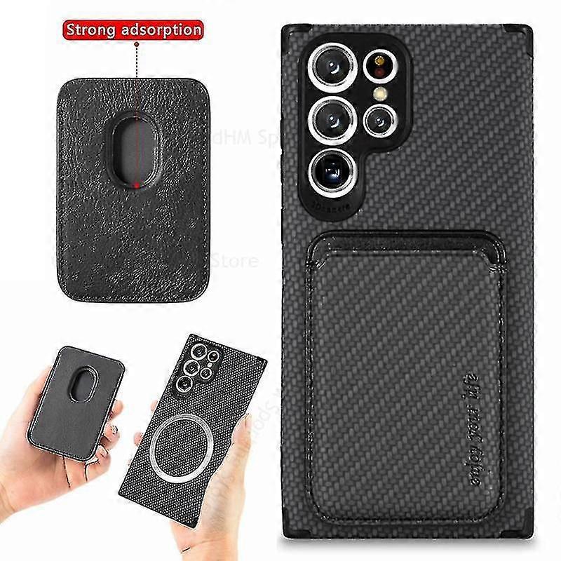 2 In 1 Carbon Fiber Magsafe Magnetic Wallet Case Compatible Samsung Galaxy S23 Ultra/ S23+/ S23 With Card Holder