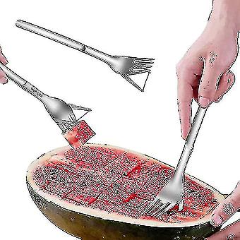 2 في 1 تقطيع البطيخ والقاطع الفولاذ المقاوم للصدأ الفاكهة قطع شوكة البطيخ مكعب أداة القطع لأداة المطبخ
