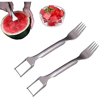 2-in-1 Watermelon Fork Slicer,watermelon Slicer Cutter Summer Watermelon Fruit Cutting Fork Stainless Steel Fruit Slicer Knife