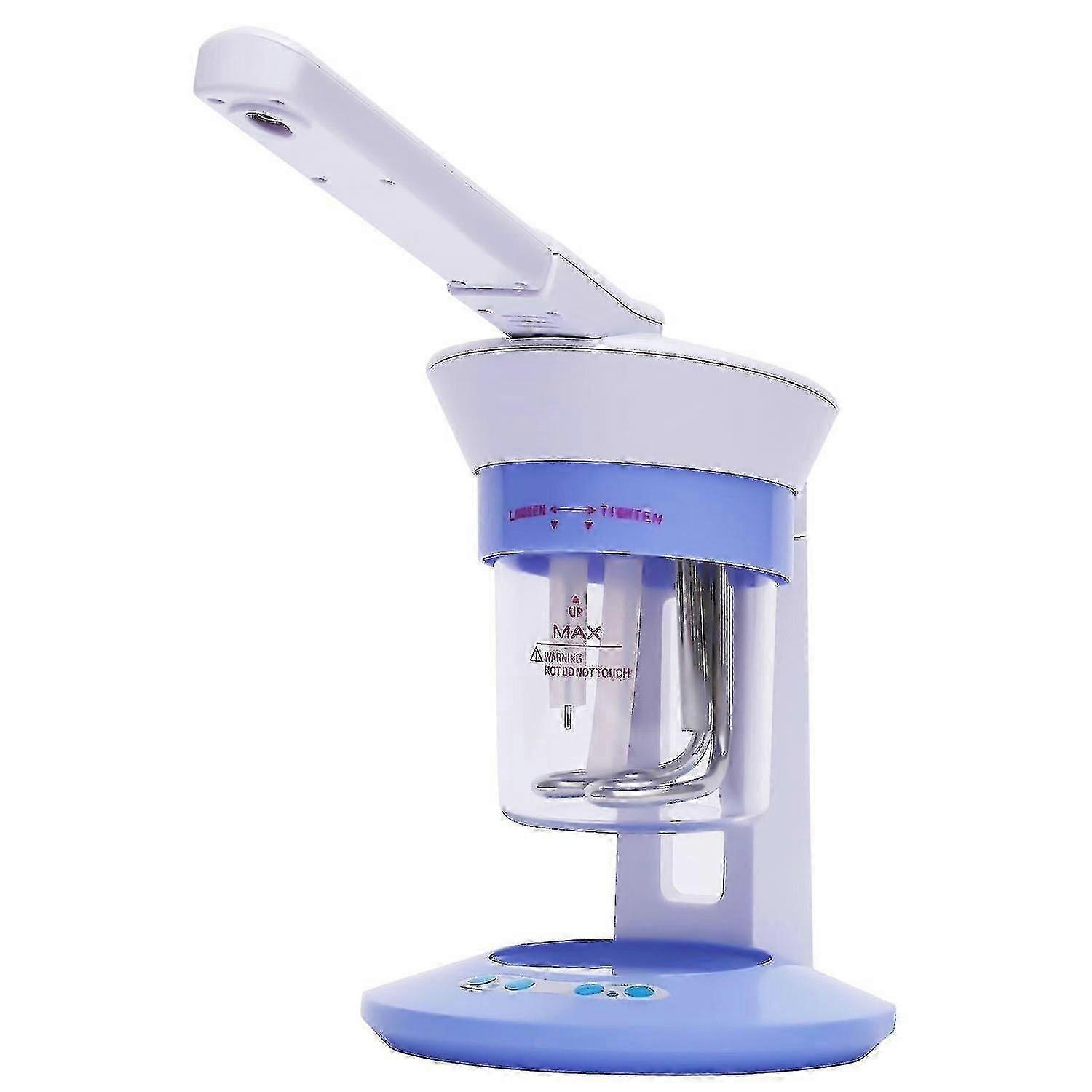 Is your skin still dry and dehydrated because of the change of season? Are you still looking for a way to hydrate your skin? Then please do not miss our steam beauty and essential oil treatment two-in-one facial steamer Our facial steamer uses ozone ionization technology to allow oxygen ions to be sprayed directly onto the skin, bringing moisture and pleasure to the skin. Key Features Deep Cleansing: The fine water vapor produced by our facial steamer promotes the opening of pores. The tiny water molecules soften the keratin to penetrate deep into the pores to take away excess impurities, makeup residue, etc., providing a deep clean for your skin. Sturdy and Durable: The facial steamer is made of high-quality ABS. The ABS with excellent impact resistance makes this facial steamer sturdy and durable. Comfortable Experience: The delicate nozzle of our facial steamer brings you delicate and warm steam. The warm steam brings you a comfortable and pleasant experience. Hydration: The facial steamer transforms water into nano-sized warm mist particles. The nano water particles directly and effectively replenish skin moisture, restoring hydration and smoothness to the skin. Essential Oil Skin Care: The facial steamer features a special essential oil port allowing you to perform professional essential oil treatments, so you can add various essential oils according to the state of your skin. Ozone Beauty: The facial steamer uses ozone ionization technology to allow oxygen ions to be sprayed directly onto the skin, promoting the regeneration of epithelial cells. The ozone also has antibacterial and anti-inflammatory properties that help with this sunburn acne. Portable Facial Steamer: The mini tabletop design of this facial mister makes it the perfect steam machine to have at home. Unlike the bulky ones, this portable mister can be placed on top of any flat surface which helps save prep time for your beauty routine. Easy to Use and Convenient: Just add water, connect the power and turn on the steam switch, wait for 15-20 minutes, you can enjoy luxurious professional salon skin care at home. Protective Packaging: The face steamer is carefully packaged in foam. The protective foam packaging prevents the product from being damaged in transit and allows the face steamer to reach you intact. Automatic Power-off: The facial steamer has a protective design that automatically powers off when the water level is too low or too high. This thoughtful design greatly reduces the probability of accidents such as dry burns. Flexible Operation: The adjustable nozzle is suitable for different heights and sitting positions, such as lying, sitting, or standing. The 360 rotatable nozzle allows you to enjoy the spa from any angle. Details Enlarged Nozzle: The nozzle is enlarged to make the spray area wider so that your whole face can enjoy delicate and warm steam. Essential Oil Port: The design of the essential oil port allows you to add different essential oils according to your needs, so you can care for your skin more precisely. Simple Buttons: Both steam and ozone have clear and independent switches, which are very easy to operate. Application Our facialsteamer is suitable for all kinds of skin hydration, cleansing, anti-inflammatory, etc. It is suitable for homes, beauty salons, etc. Specification Material: ABS Color: Blue, White Voltage: 220V Power: 400W Fogging Time: 15-20min Safety Distance: 30-40cm/11.81-15.74in Water Tank Capacity: 330ml/11.61oz Gross Weight: 1.85kg/4.07lbs Net Weight: 1.7kg/3.74lbs Package Size: 22.1*20.7*28.4cm/8.7*8.14*11.18in Base Length: 18cm/7.1in Product Height: 23cm/9in Nozzle Arm Length: 26cm/10.2in Package Included 1*Facial Steamer 1*Nozzle Arm 1*English Manual Notes 1.The distance between the nozzle and the facial skin should be adjusted according to the strength of the jet and the sensitivity of the user to the steam. 2.Please do not exceed the maximum water level when adding water. 3.Please allow the slight color difference caused by the shooting light and 1-3cm error due to manual measurement. Please make sure you do not mind before you order.
