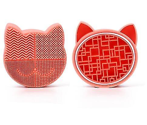 2 In 1 Silicone Makeup Brush Cleaning Mat With Brush Drying Holder, Cat Shaped Reusable Brush Cleaner Pad Washing Tool
