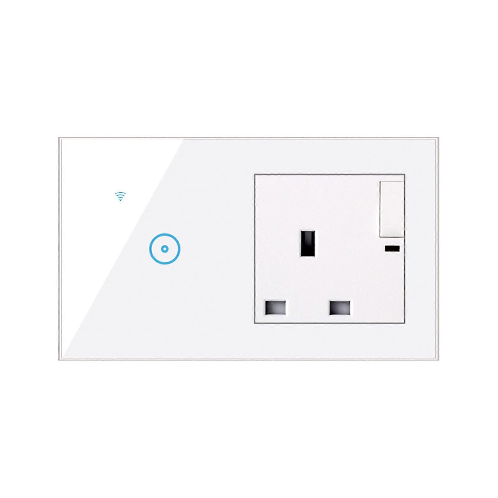 2 in 1 Smart Wall Outlet Switch Voice APP Touch Control for Alexa Neutral Live Wire Installation White