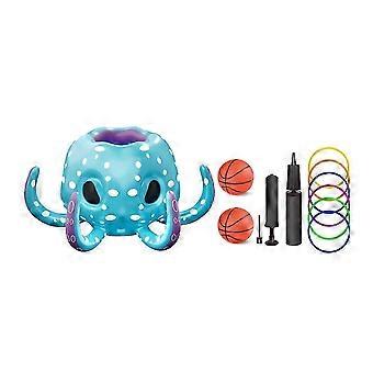 2-In-1 Inflatable Basketball Hoop Ring Toss , Indoor Outdoor Water Play, Spring Summer Octopus Pool Toys