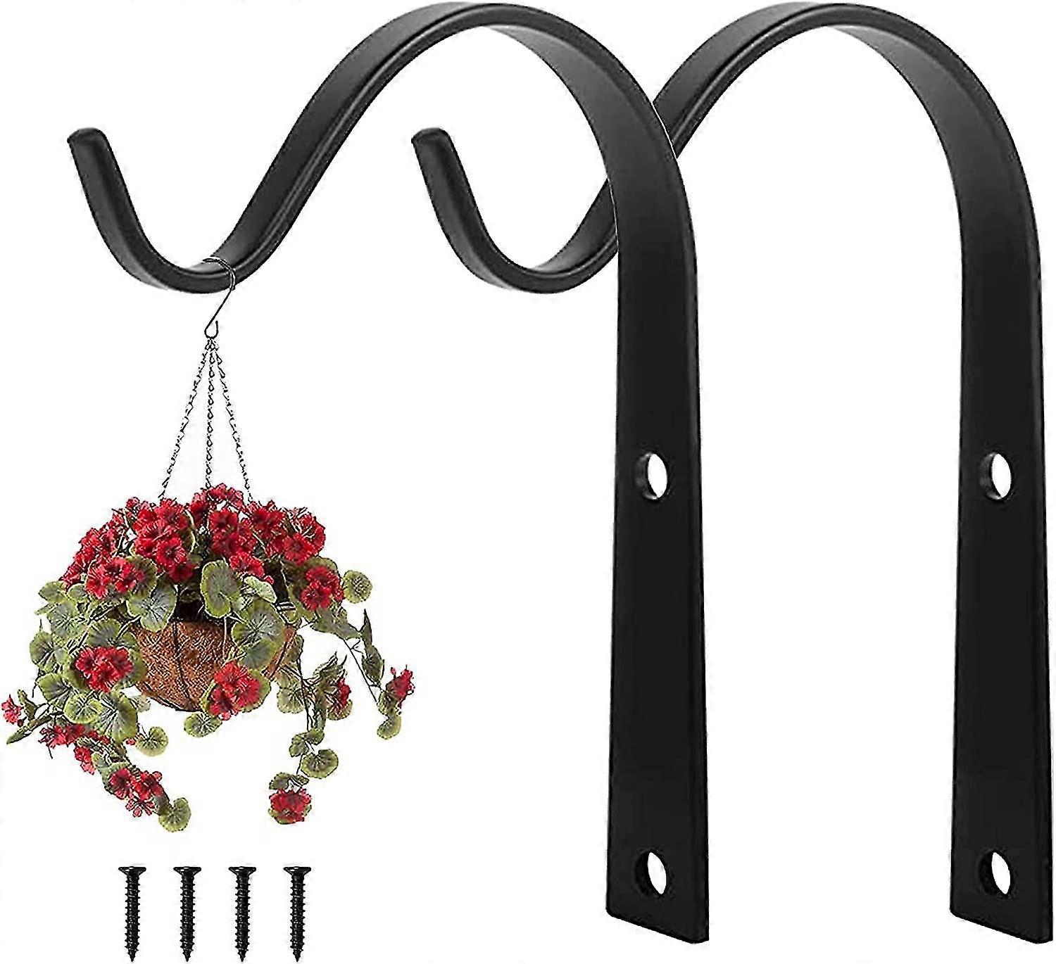 2 Pieces Wall Hanging Plant Hook Wrought Iron Hanging Hook Wall Plant Holder Balcony Garden Metal With Screws - Black
