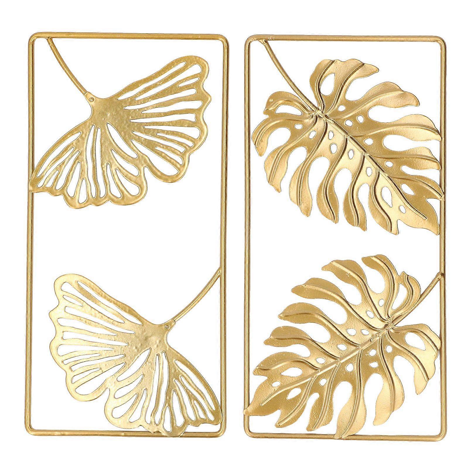 2Pcs Ginkgo Leaf Wall Decor Strong Metal Exquisite Color Widely Used Gold Wall Decor for Bedroom Office Living Room