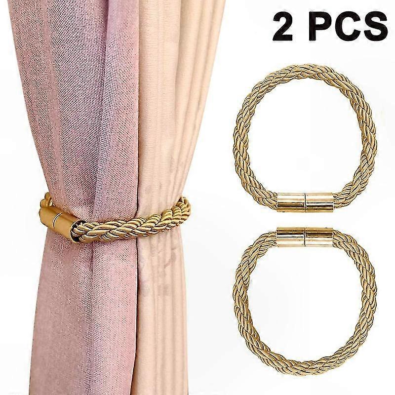 2 Pieces Magnetic Curtain Tiebacks, Golden Rope Holdbacks for Window Treatments, No Drilling Required