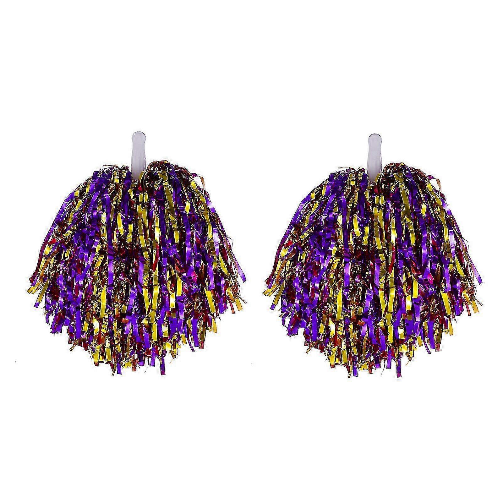 2Pcs Cheerleader Pom Poms Metallic Foil Cheerleader Pom Poms Hand Flowers with Handle for Sports Competitions Celebrations