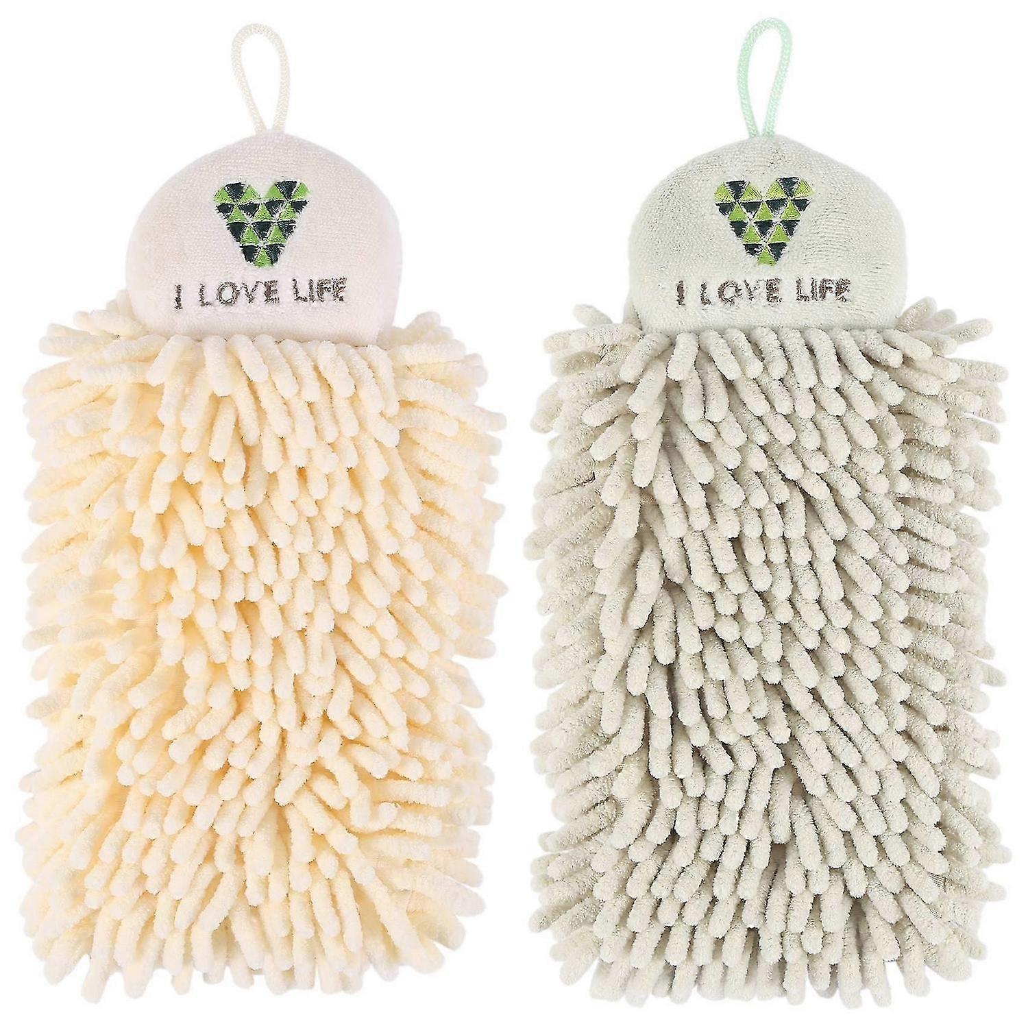 2Pcs Kitchen Hanging Towels Set Chenille Hand Face Wipe Towels Bathroom Washcloths
