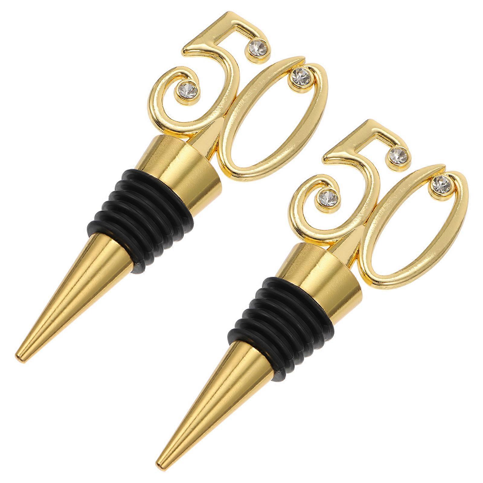 is designed to keep your fresh for a long term. In addition, it also can be a decoration to your . The creative 50 number shape design, chic and . Quality material, make it has a . Perfect for your fifty birthday party. Features -Color: Golden -Material: Alloy -Size: 10.5x4x2.5cm/4.13x1.57x0.98in - Made of material for long time and use. - The material enjoys the strong durability, not easy to deform or break. - It can be used as the wonderful decoration. - Simple in structure, easy to operate and clean. - It comes with unique decoration, which is full of the sense of beauty. Package list: 2 x stoppers