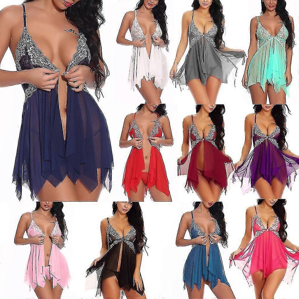2-piece Women's Underwear Set With Front Closure Lace V-neck Mesh Pyjamas Underwear Briefs