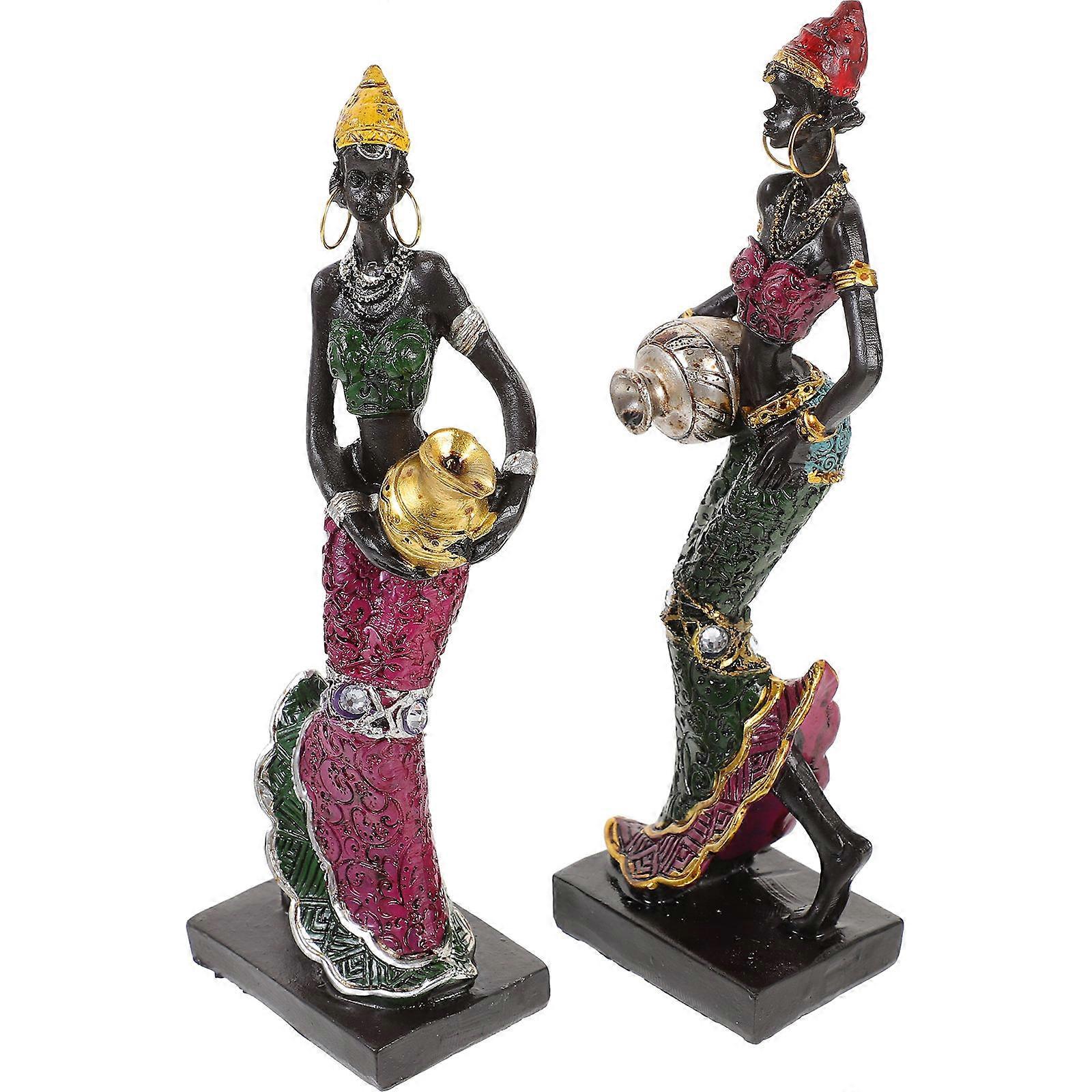 2pcs African Tribal Woman Sculpture Ethnic Vintage Art Figurines for Home Office Living Room Decor Desktop Ornament Gift