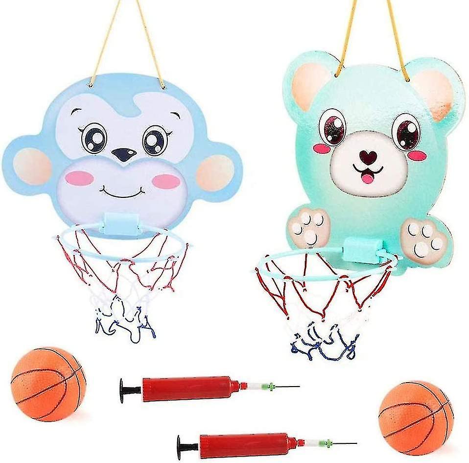 2 Piece Kids Cartoon Hanging Basketball Hoop And Backboard Set Rack Adjustable Indoor Sports Basketb