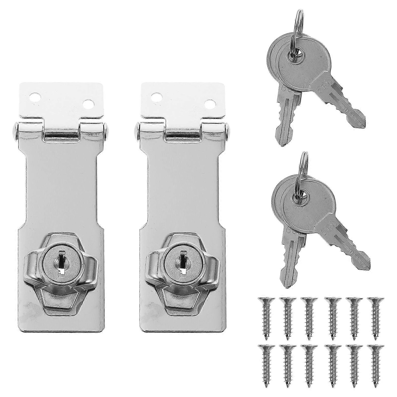 2pcs Keyed Hasp Locks Stainless Steel Door Latch for Home with Silver Finish Fits Doors