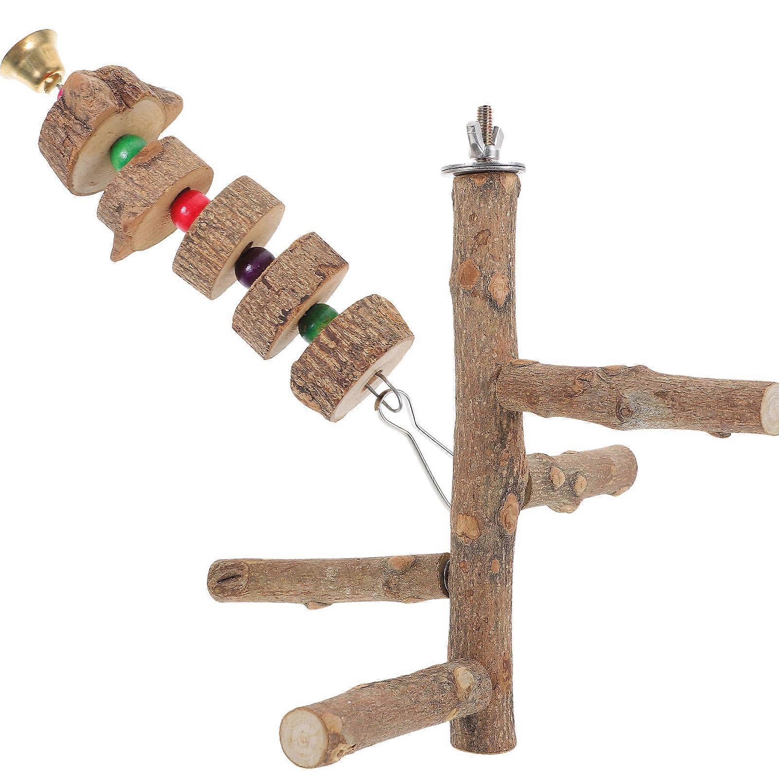 2pcs Parrot Wood Stand Bird Perch Bird Stand Pole Bird Cage Hanging Toy