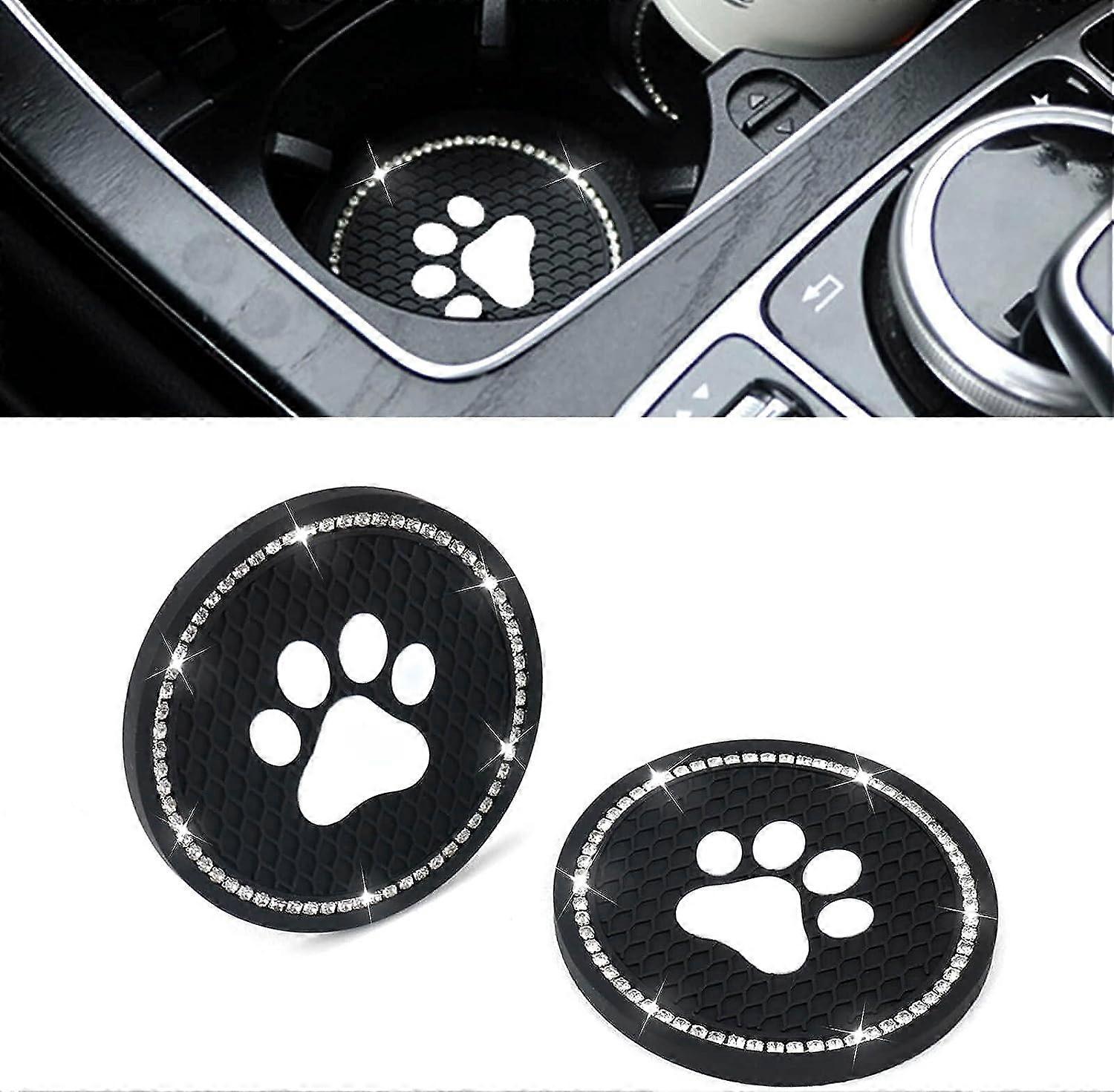 2PCS Bling Cat Paw Car Cup Coaster, black Crystal Rhinestone Car Interior Accessor YRF
