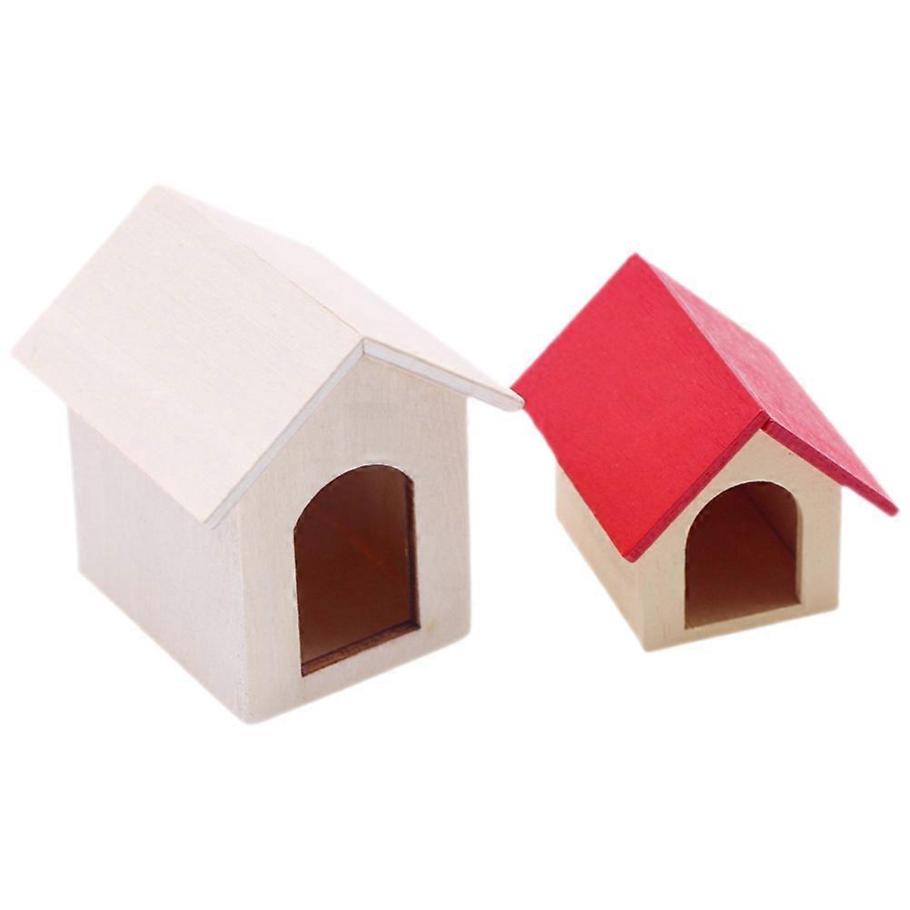 2pcs Doll House Miniature Dog Kennels Small Puppy House Toys Dollhouse Decorations for Kids