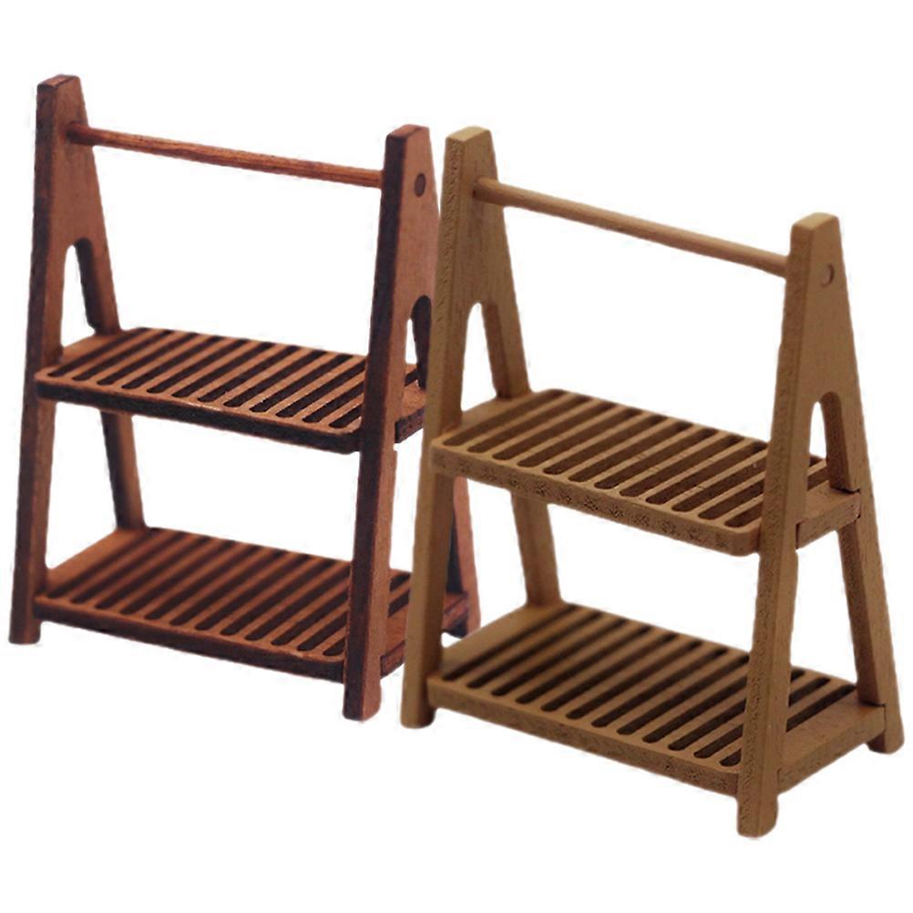 2pcs Mini Wooden Stands Modern Miniature Stands Storage Racks Mini House Decorations