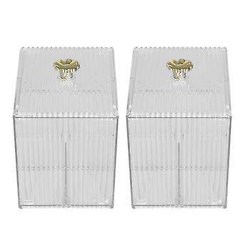 2Pcs Cotton Swab Holder Clear Durable Plastic Safe Widely Used Cotton Ball Organizer for Office Family Tabletop