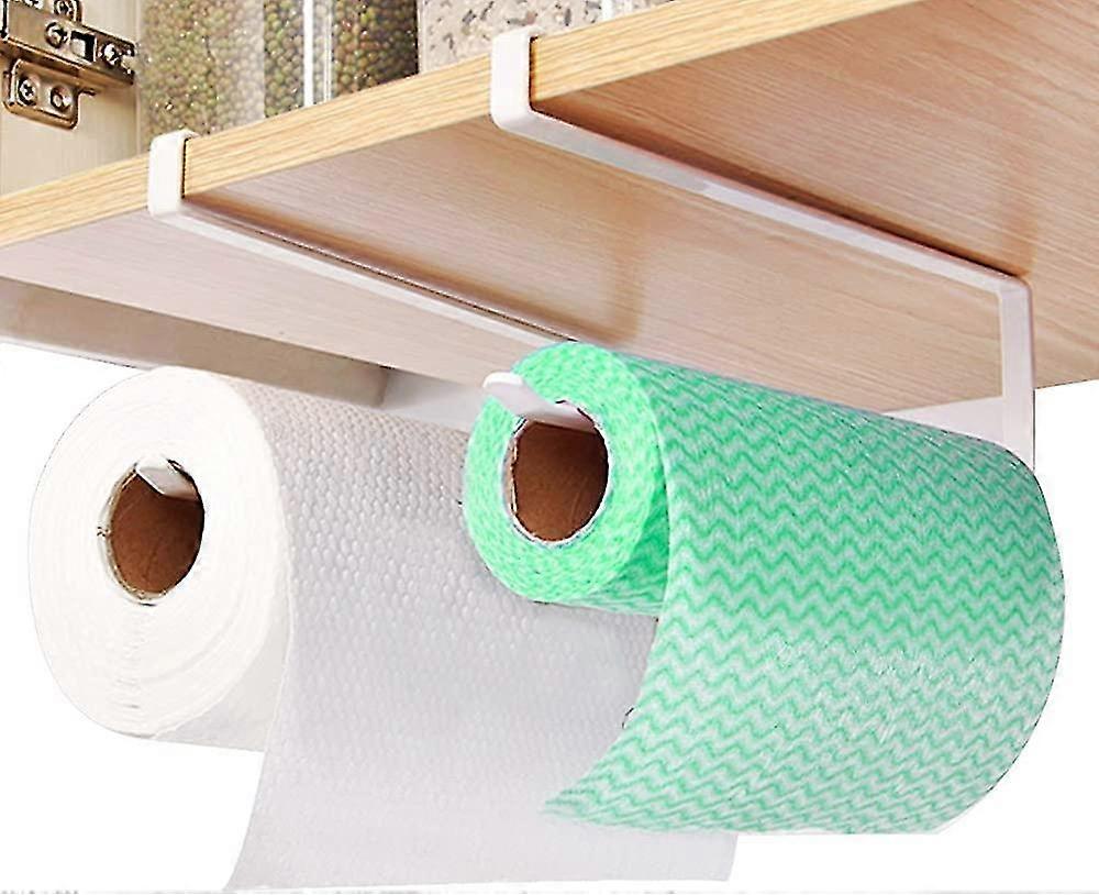 2 Pcs Paper Towel Holder Hanging Kitchen Paper Towel Holder Iron Wall Mounted Paper Towel Holder No Drilling White Toilet Paper Roll Holder For Cup, C