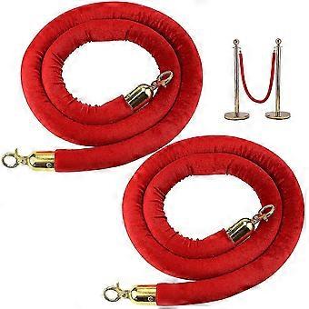 2 قطعة حبل دعامة المخملية الحمراء ، حاجز حبل التحكم في الحشود مع خطافات ذهبية مصقولة