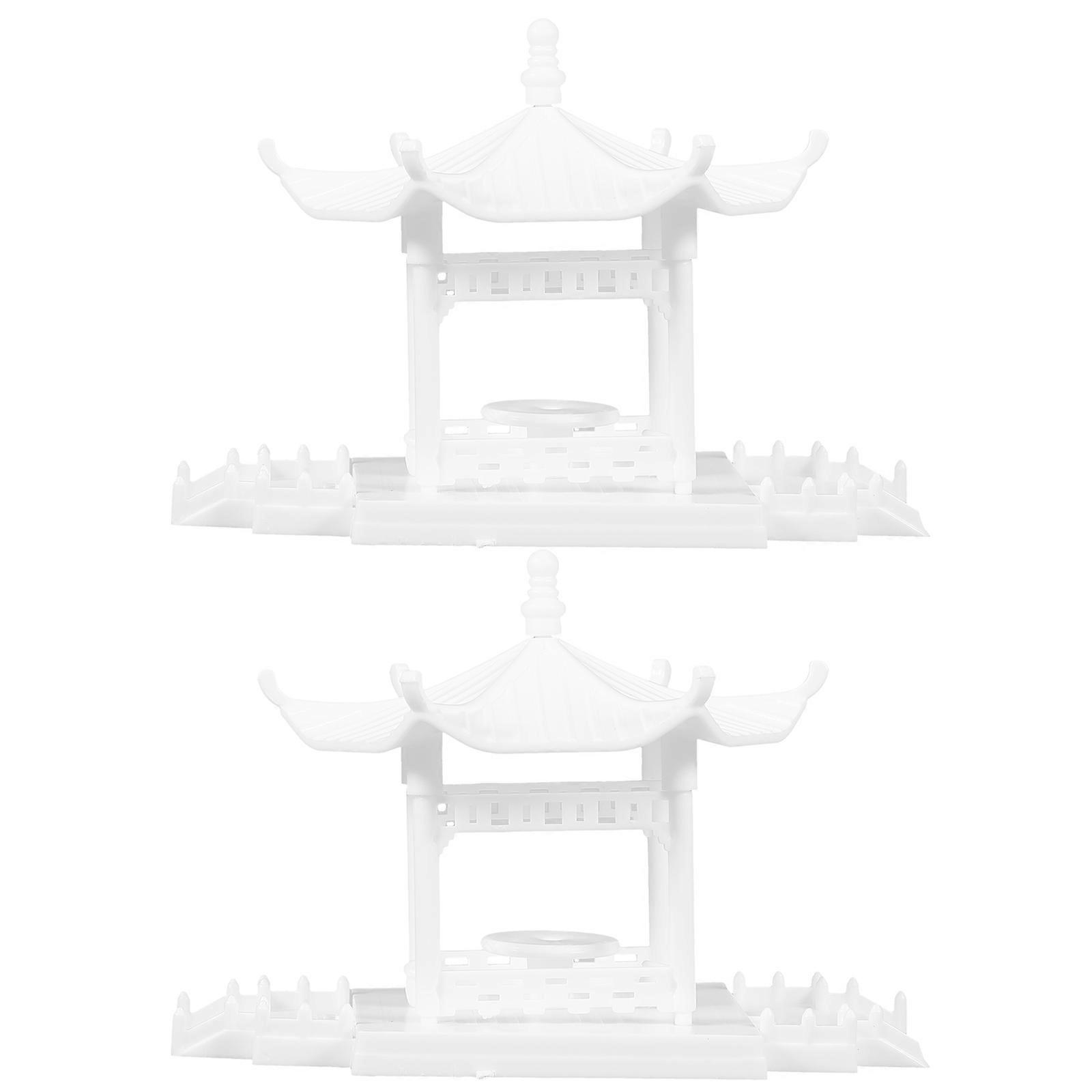 2pcs Stone Pavilion Statue Garden Landscape Decor DIY Bonsai Decor Garden Decoration 1
