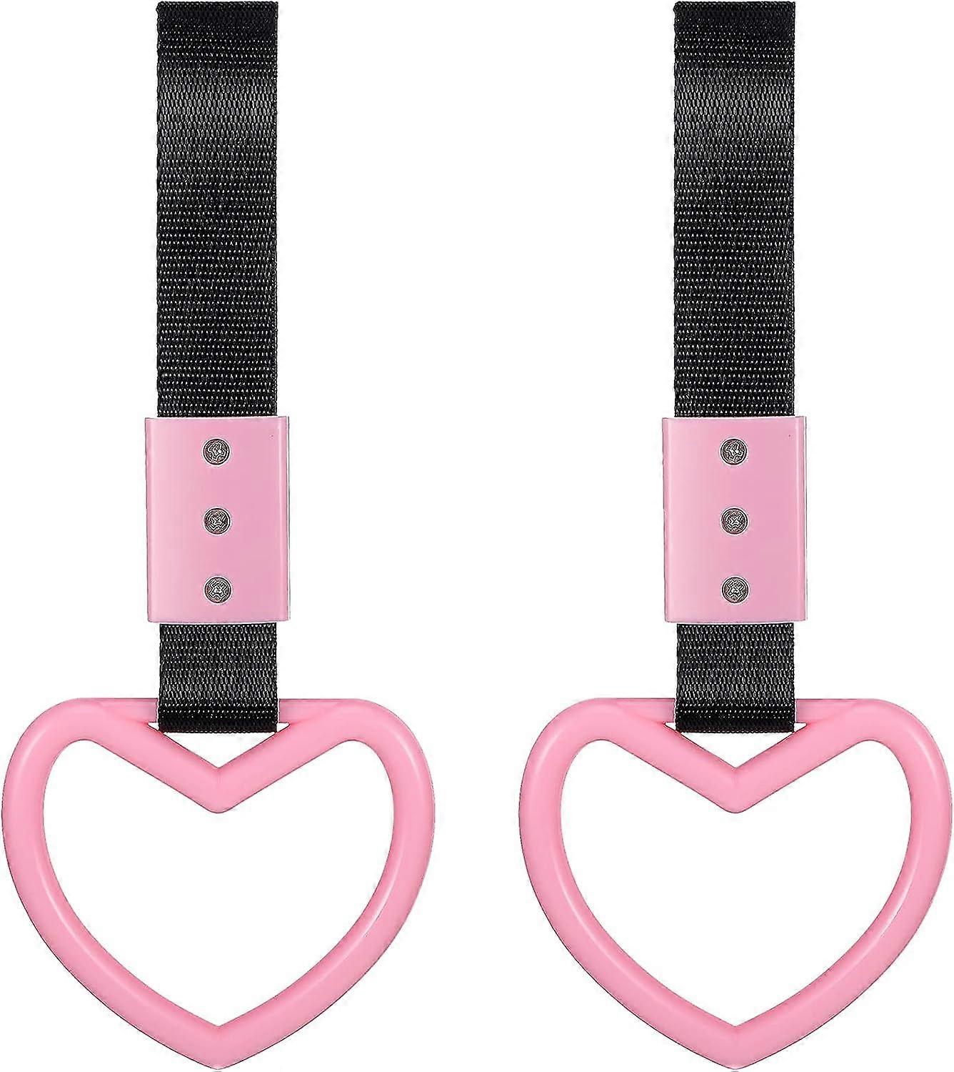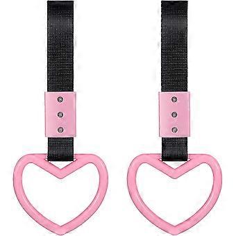 2 Pieces Rings Heart shaped Car Handle Straps Drift Charm(Light Pink)