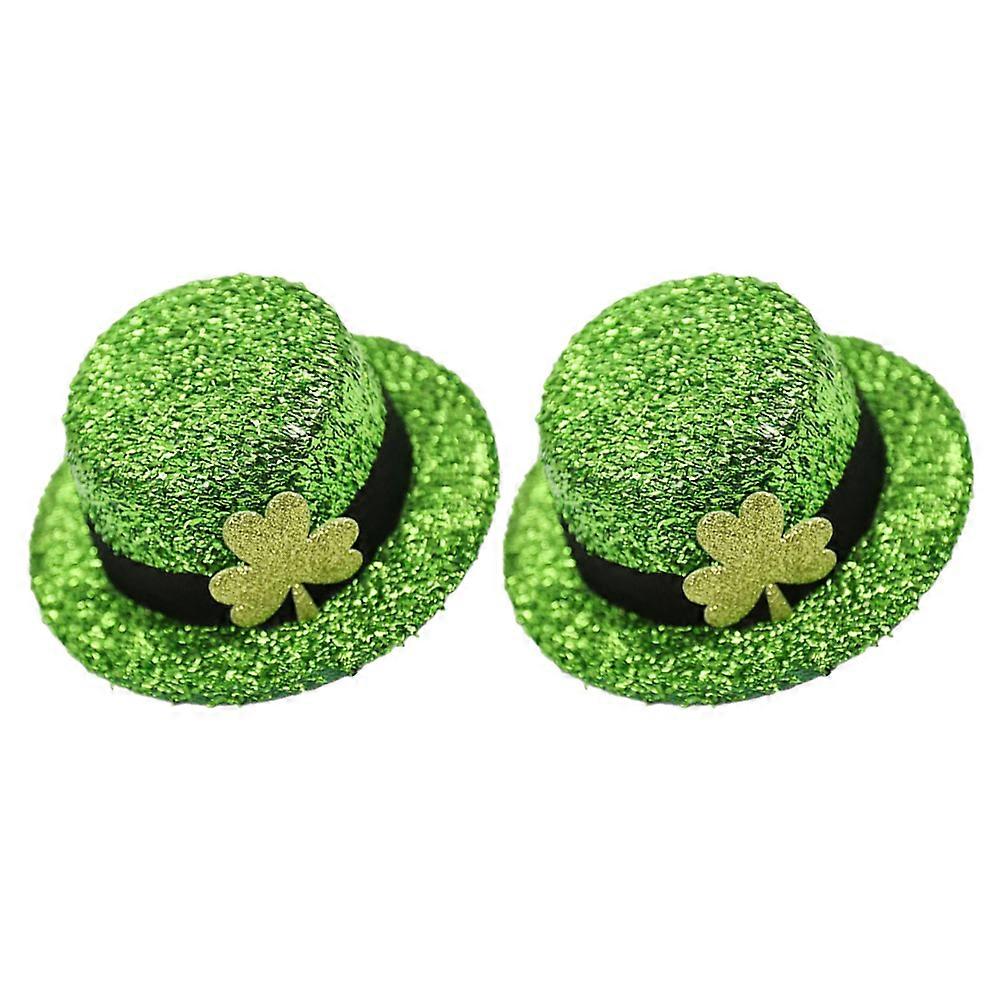 2Pcs Decorative Hairpin Featuring Classic Green Top Hat Ideal For Patrick's Day Party Costume Accessory