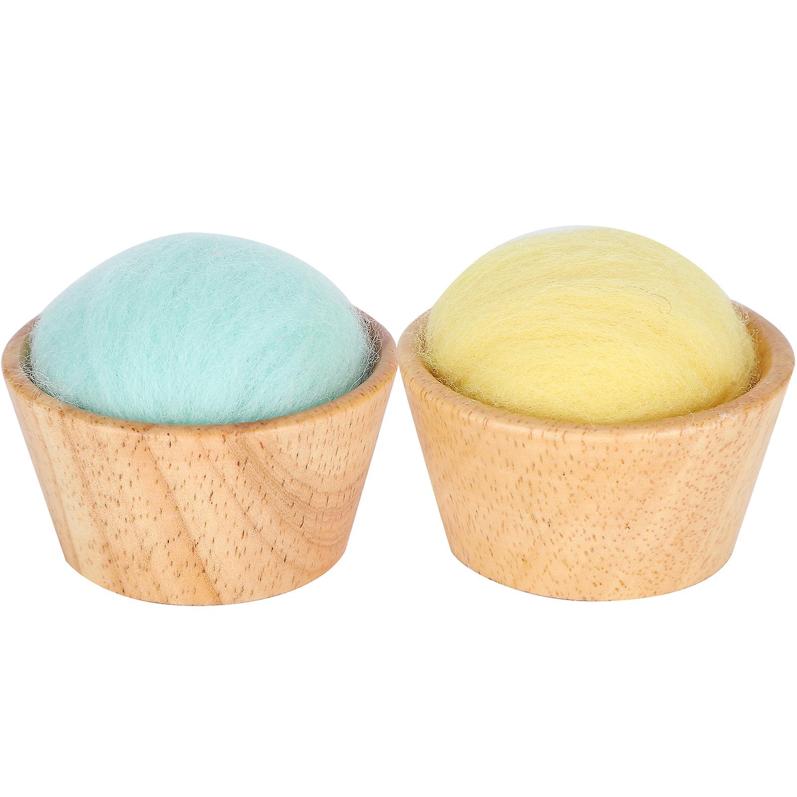 2Pcs Pin Cushion Wool Felt Poke Needle Box Vertical with Wooden Bowl Sewing Embroidery Tool