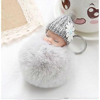2Pcs Gray Cute Winter Sleep Doll, Plush Pendant Keychain Az9898