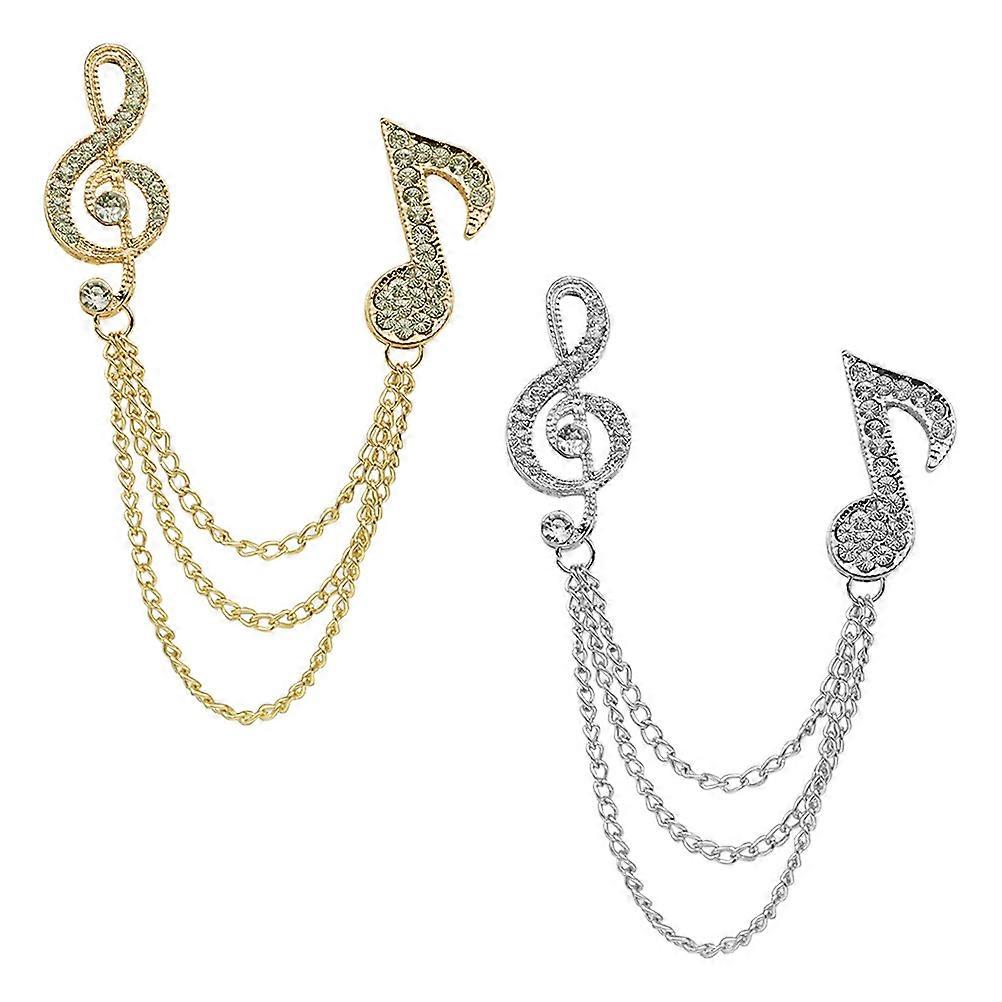 2pcs Men's Rhinestone Musical Note Tie Pin Brooches Jewelry Collar Chains