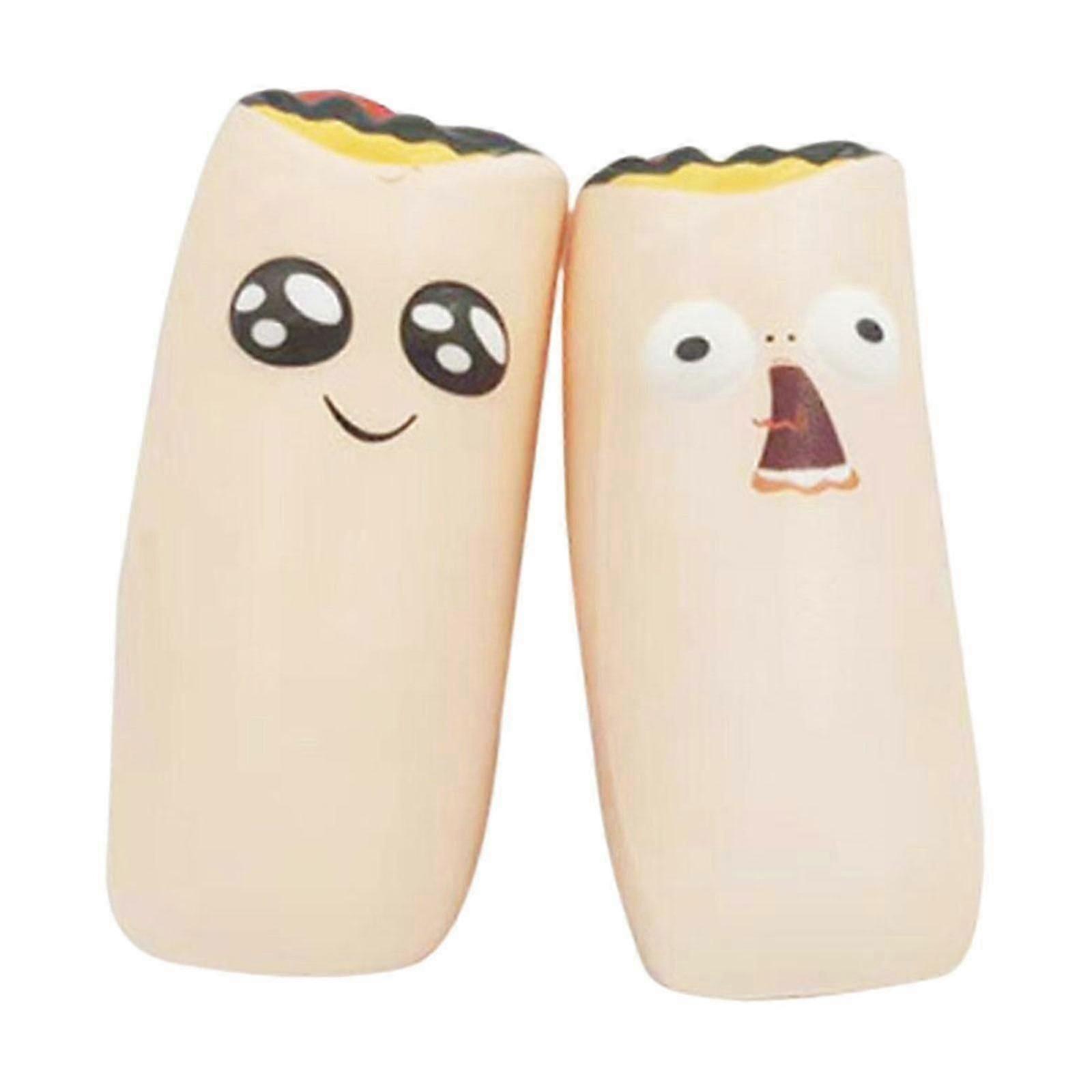 MATERIAL: Made of high quality material, durable. PORTABLE: Compact size, light weight, easily carry. PERFECT GIFT: Perfect gift for children, teens, boys girls, adults. SENSORY TOYS: Great for birthdays, socks stuffing and other holiday gifts. TOYS: Great choice for classroom games, office games, party games. Size Chart: 5cmx13.4cm/1.97inchx5.28inch Package Includes: 2Throw Burrito Doll Note: 1.This is not infant toy, please take away from children to avoid eating. 2.Please allow slightly errors due to manual measurement and different monitors.