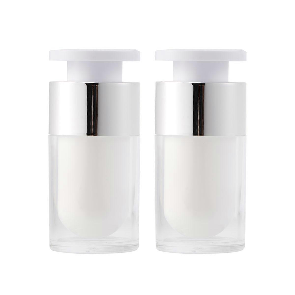 2pcs Refillable Acrylic Vacuum Bottles Travel Friendly Press Pump Containers for Cosmetics, Lotion & Perfume – Leak Proof Design, Easy Carry White