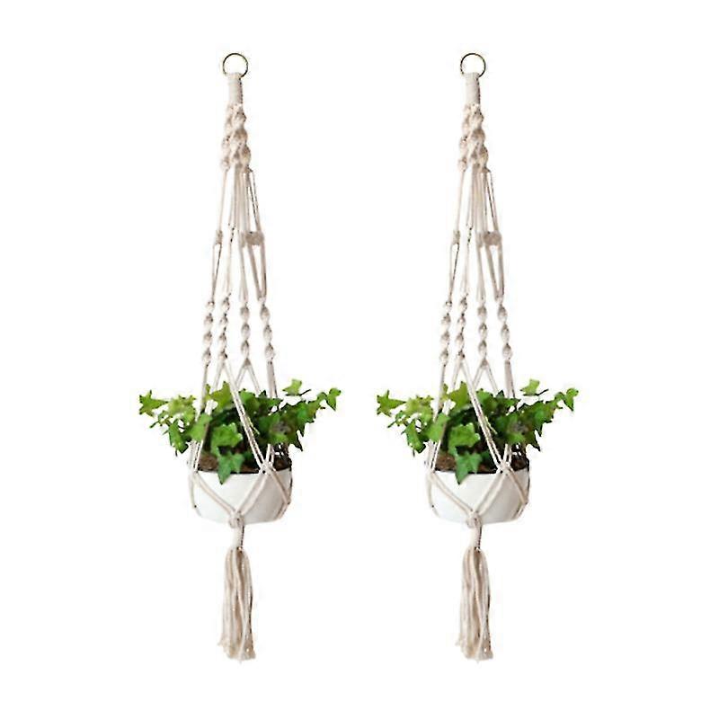 2pcs flowerpot hanging net hand knitting string bag wall-mounted decor for home garden store size large