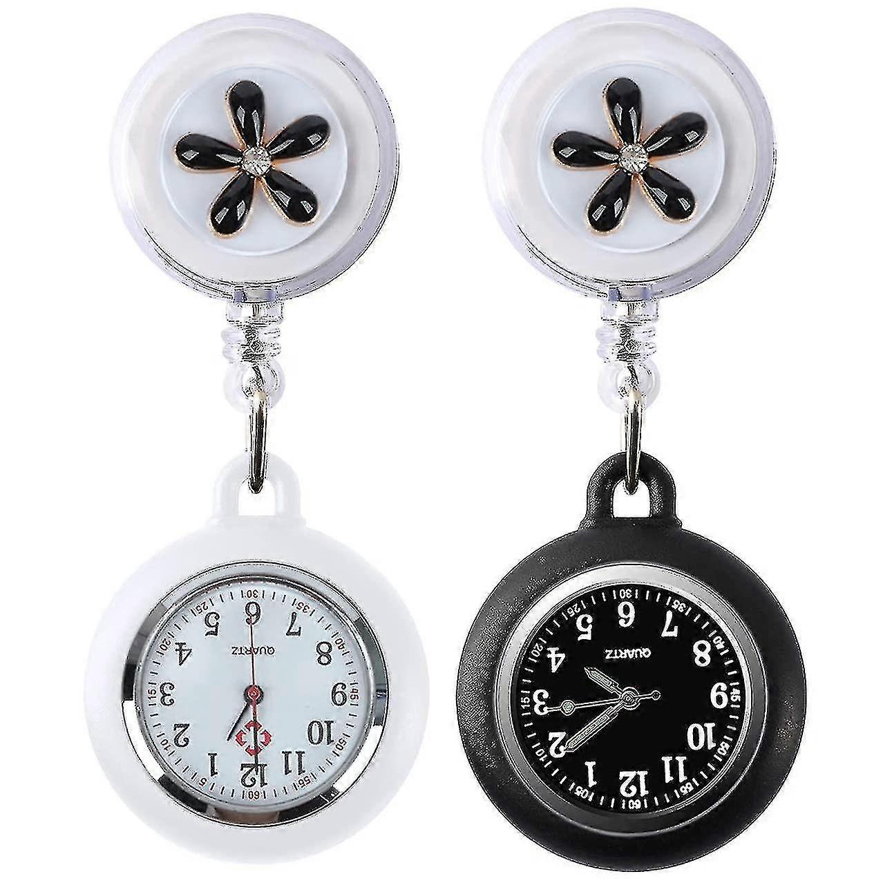 2PCS Retractable Nurse Watch, Clip-on Hanging Nurse Fob Watch, with Cute Flower Pattern and Silicone Cover for Doctors, Paramedics - MXBC