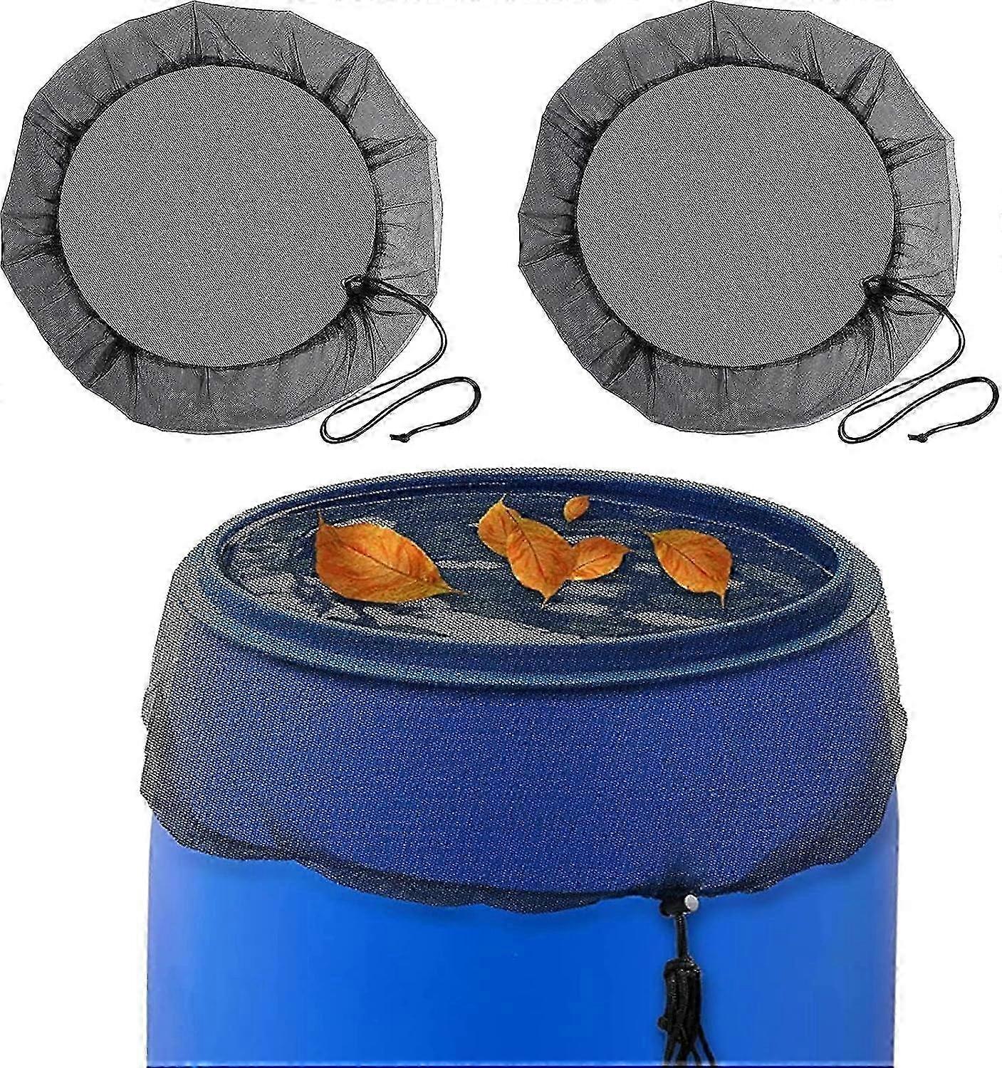 2PCS Rain Barrel Protection Net,95cm Rain Barrel Net with Drawstring for Dustproof, Deciduous, Mosquito Repellent-Black