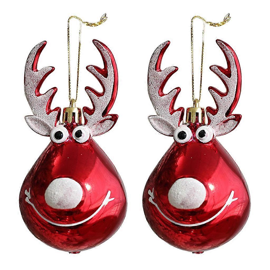 2pcs Christmas Tree Ornaments Elk Ball Hanging Pendant Decorations Scene Layout Red