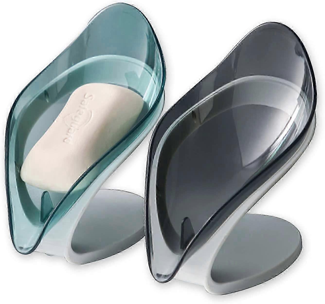 2 Piece Self Draining Leaf Soap Holder Soap Dish with Silicone Suction Cup, Plastic Soap Container for Kitchen Toilet Bathroom