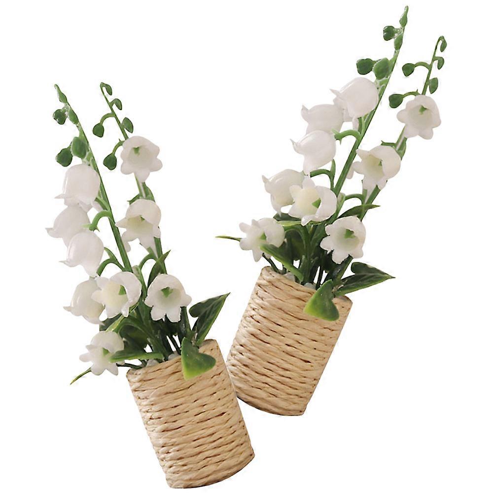 2 pcs Mini Potted Plant Doll House Mini Hyacinth Bonsai Faux Potted Plant Model for Decoration