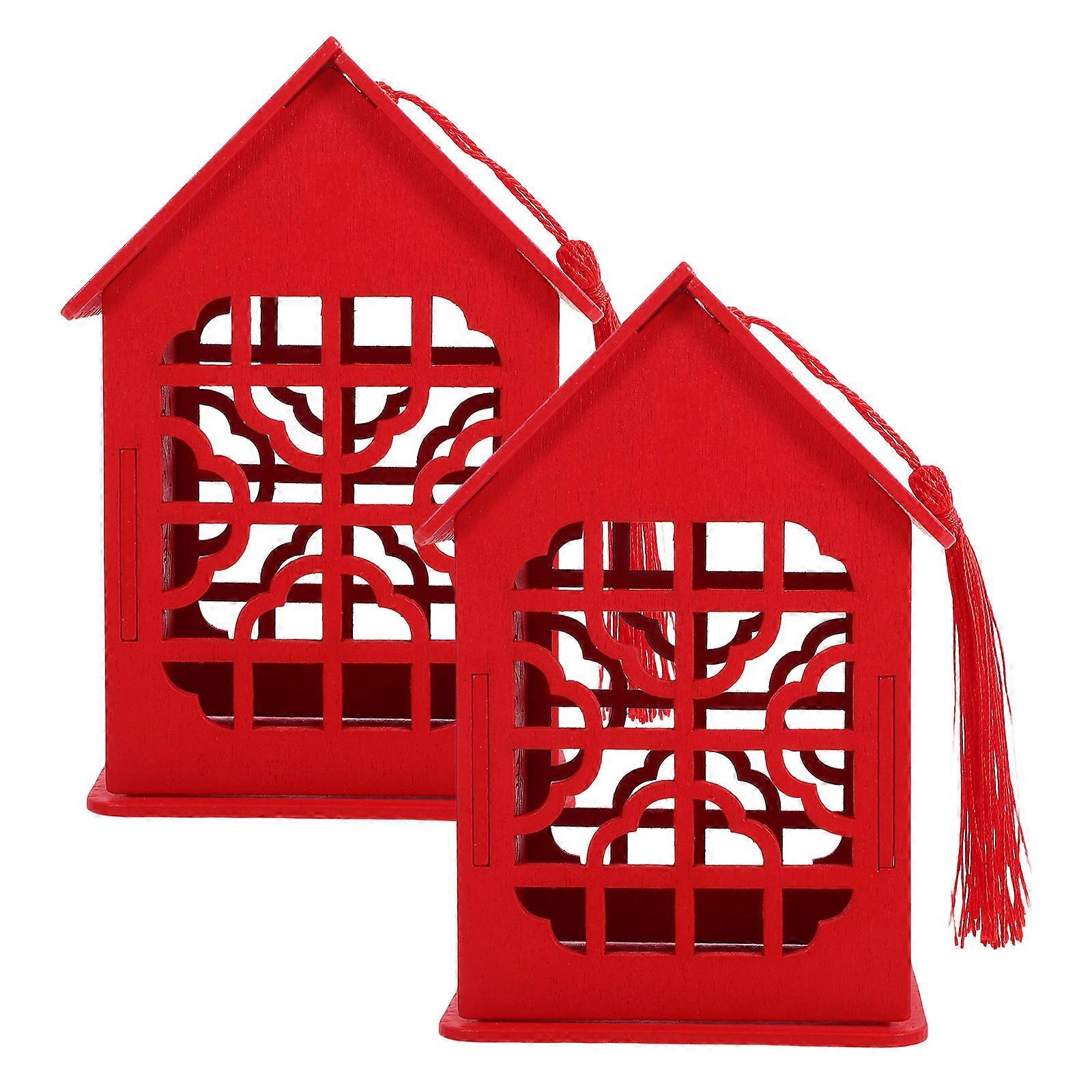 2pcs Chinese Style Wooden Candy Boxes for Weddings Parties Wooden Wedding Candy Box Wooden Hollow Candy Box Chinese Style Candy Box with Tassel