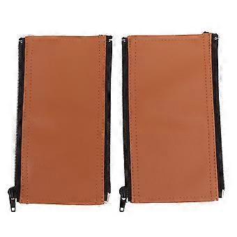 2pcs Stroller Handle Sleeve Zipper Cleanable Soft Comfortable Elastic Stroller PU Leather Cover Brown
