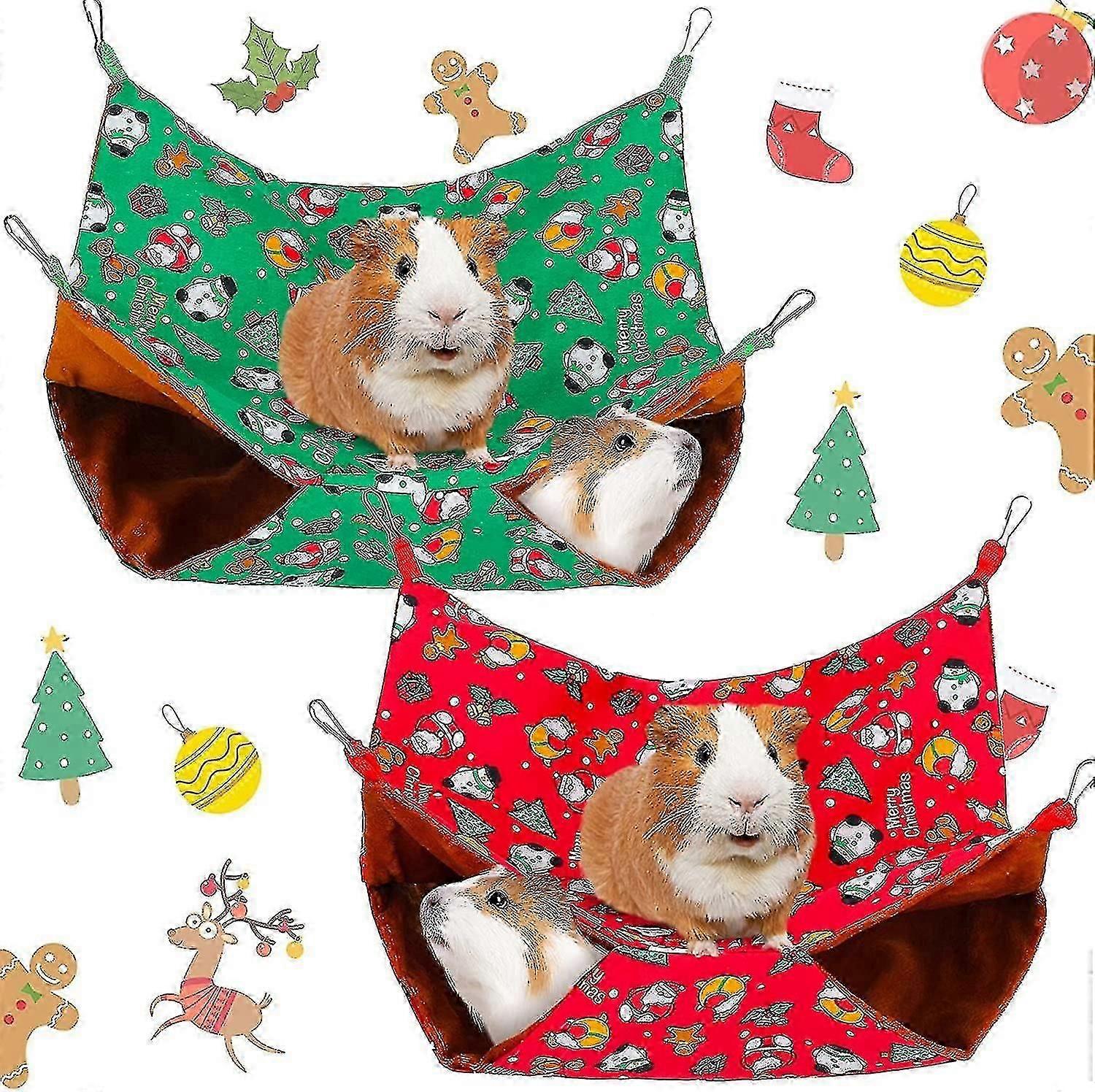 2 Pieces Christmas Ferret Hammock Guinea Pig Pet Hammock Print Santa Claus Ferret Hammock Small Animal Hamster Hammock Rabbit Squirrel Play, Green, Re