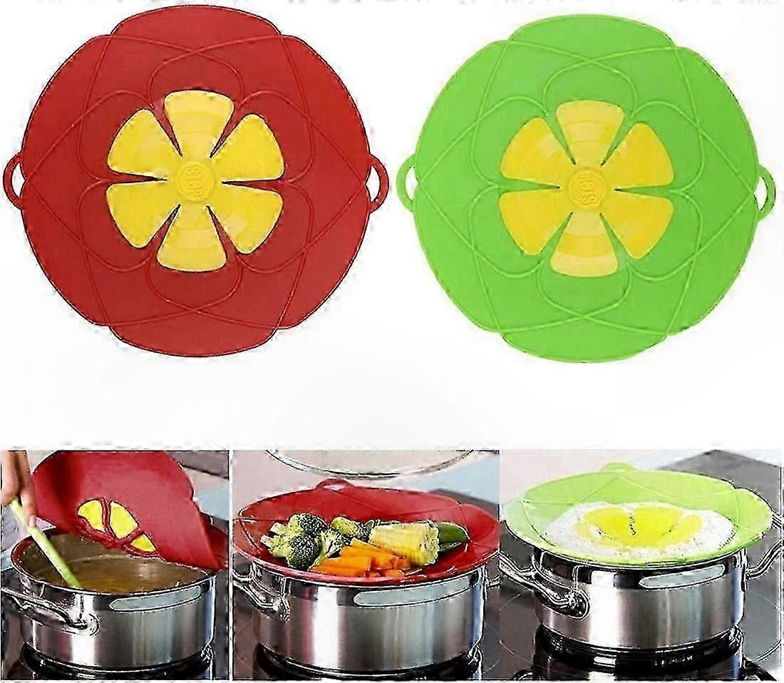 2Pcs Spill Stopper Lid Cover,Boil Over Safeguard, 10.2"Green+Red