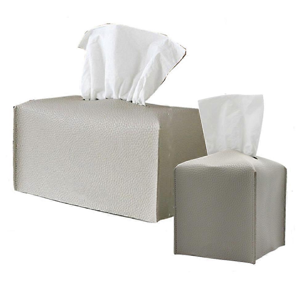 2 PCS Tissue Box Cover, Modern PU Leather Square Tissue Box Holder for Creative Decorative, Ideal for Bathrooms/Office/Car/Dining Table