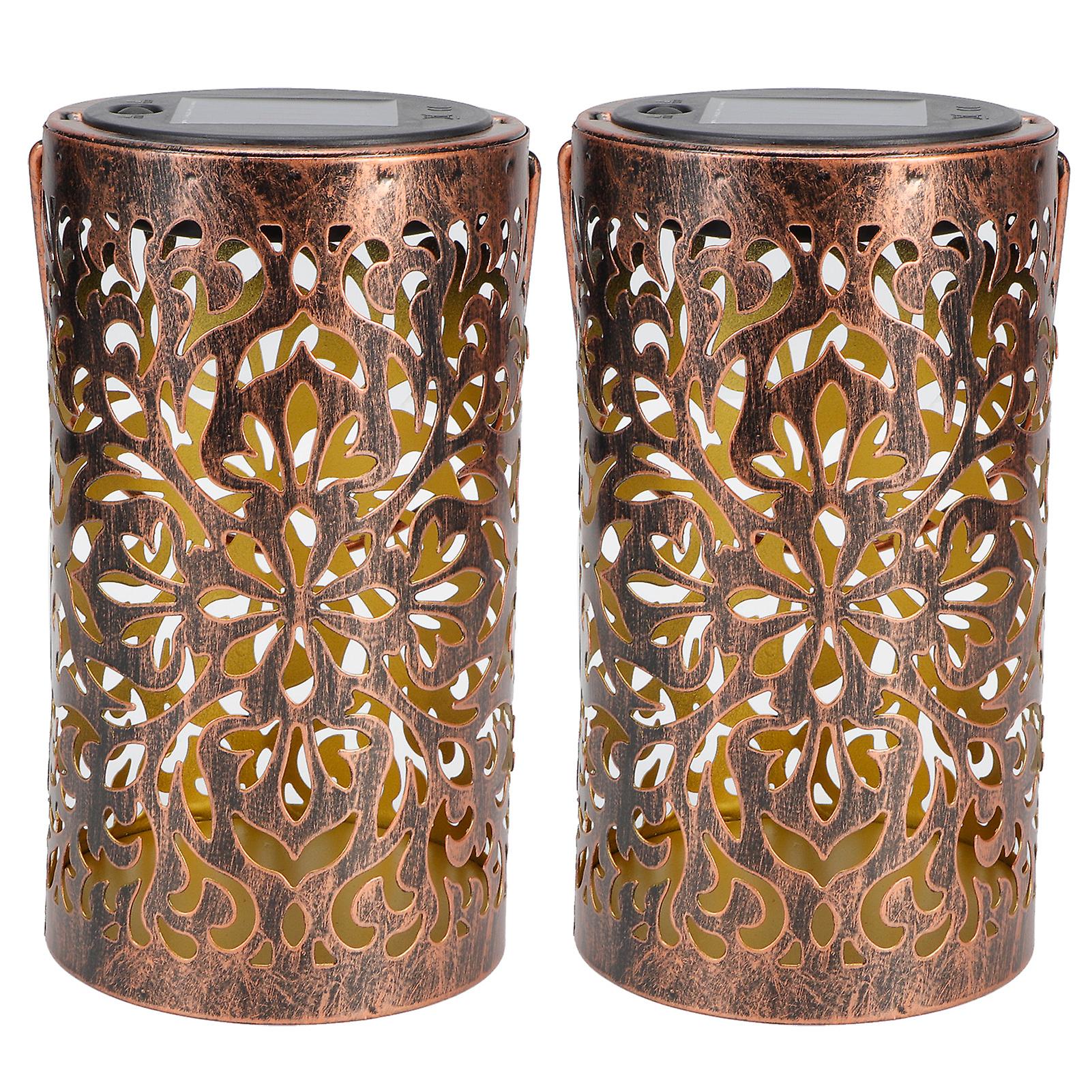 2pcs Solar Hanging Lantern LED Outdoor Iron Hollow Shaped Decoration Lights with Handle
