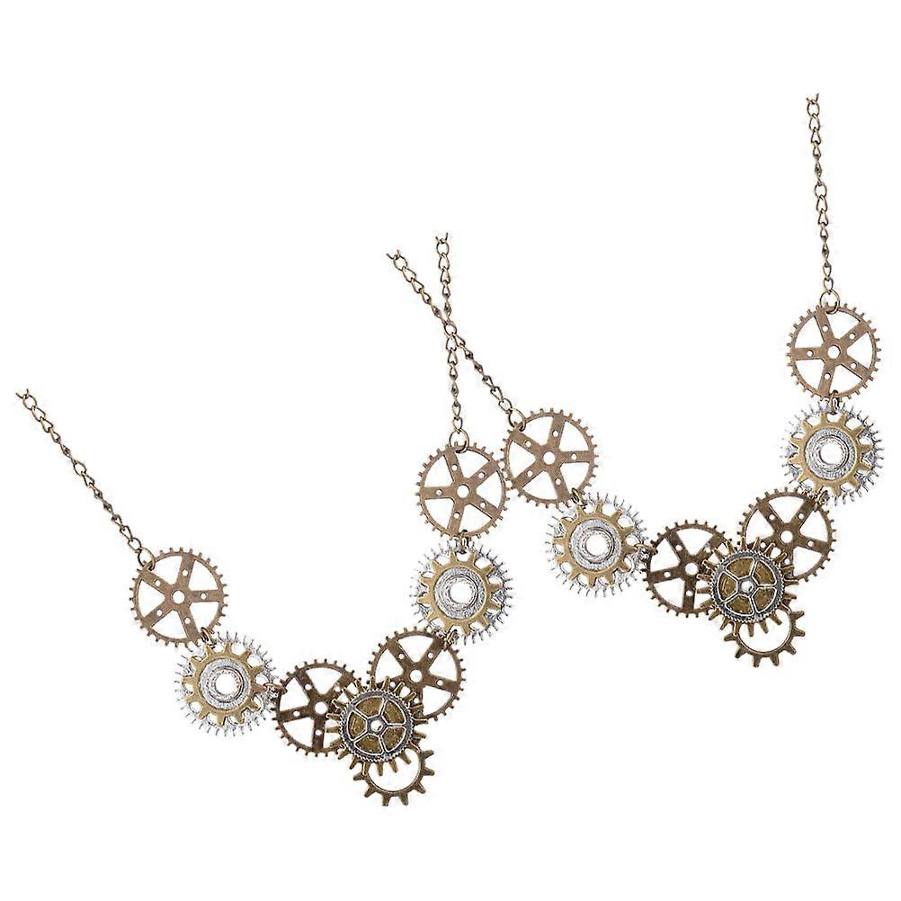 2PCS Unique Steampunk Gear Pendant Necklace for Women Vintage Zinc Alloy Jewelry Adjustable Chain