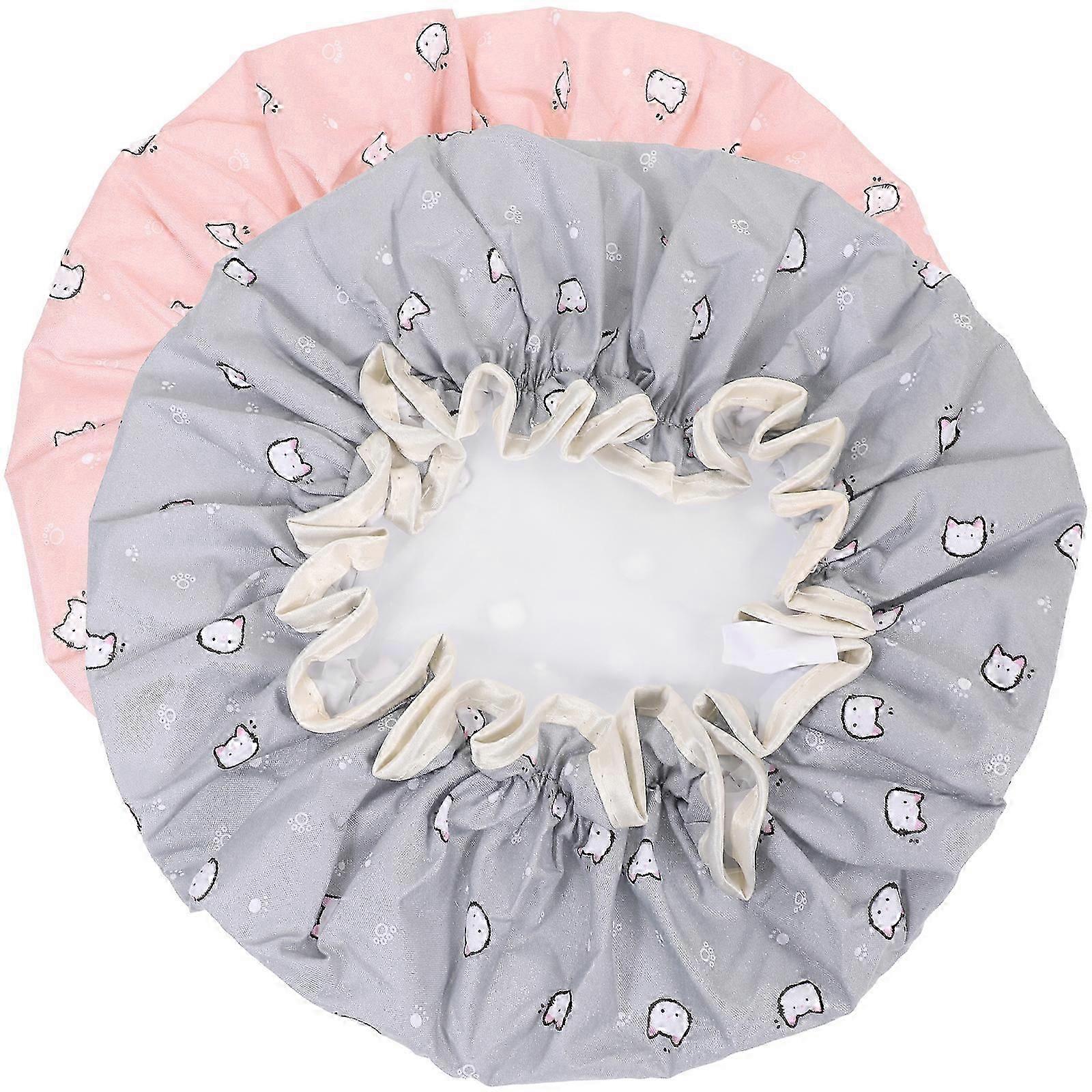 2Pcs Elastic Shower Caps Adorable Double Layers Bathing Shower Hat Hair Protection Hats