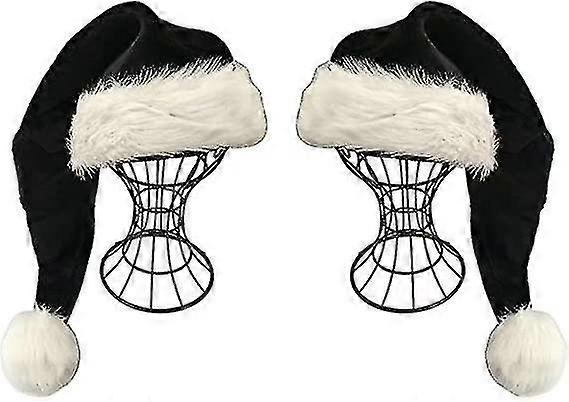 2 Pcs Black Santa Hat - Adults Deluxe Black And White Xmas Christmas Hat Pack